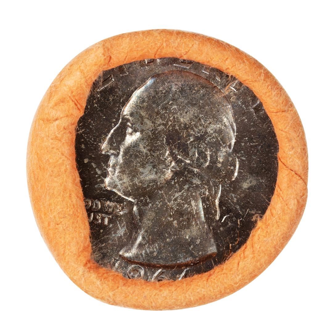 One Original Bank Roll of (40) Brilliant Uncirculated 1964 Washington Quarter Coins.