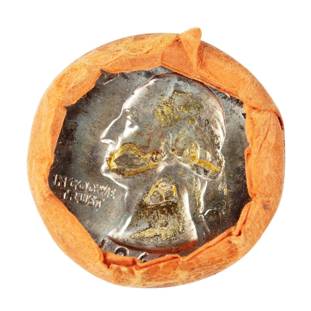 One Original Bank Roll of (40) Brilliant Uncirculated 1964 Washington Quarter Coins.