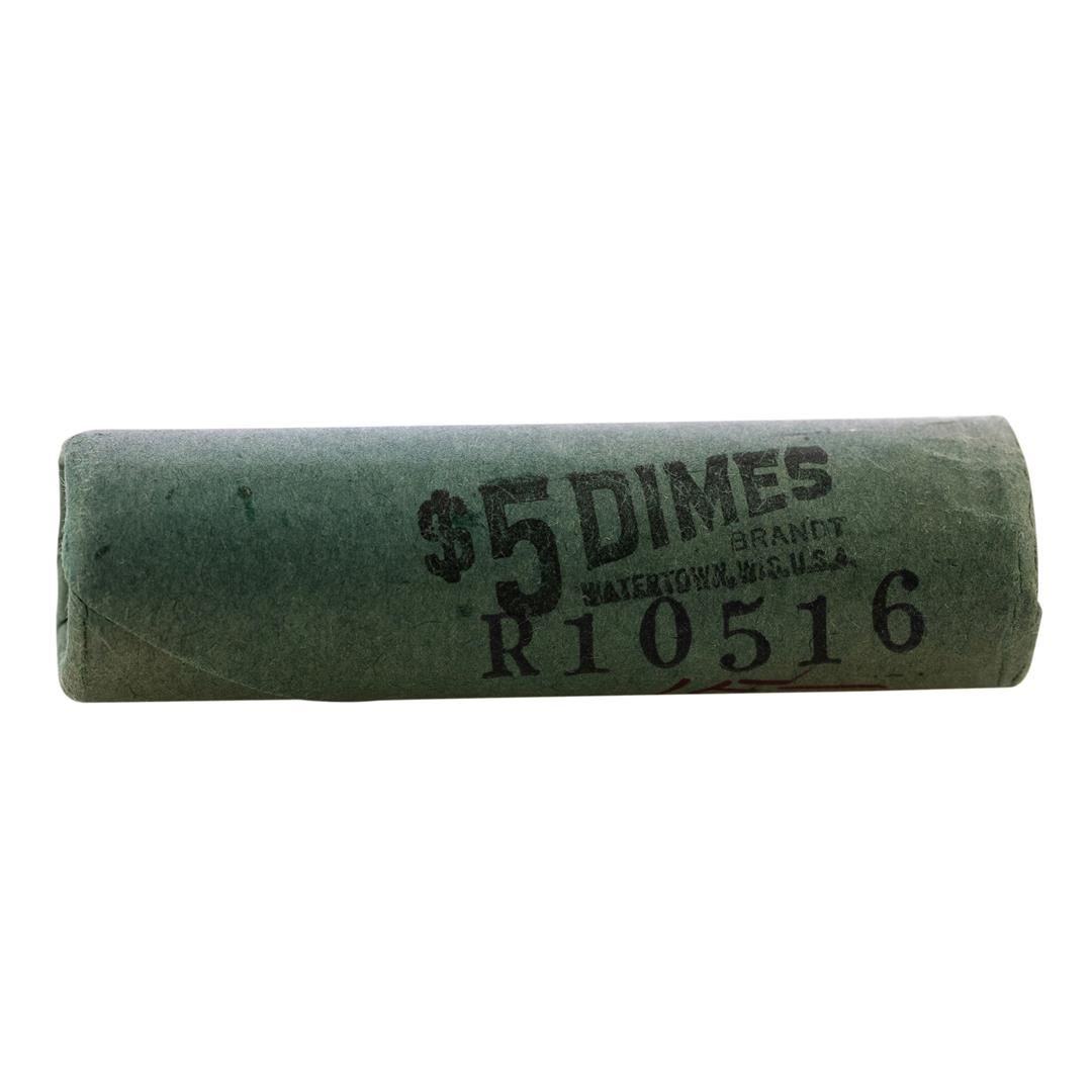 One Original Bank Roll of (50) Brilliant Uncirculated 1955 Roosevelt Dime Coins.