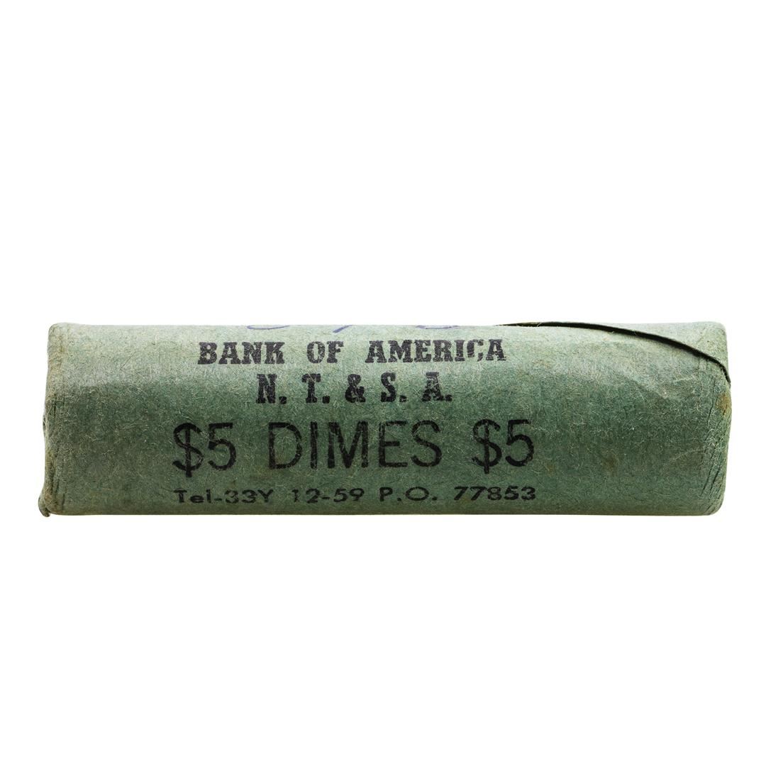 Original Bank Roll of (50) Brilliant Uncirculated 1959-D Roosevelt Dime Coins