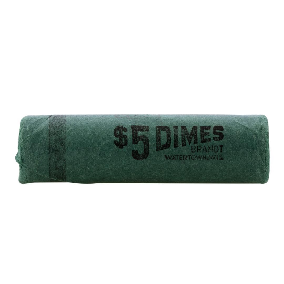 One Original Bank Roll of (50) Brilliant Uncirculated 1962-D Roosevelt Dime Coins.