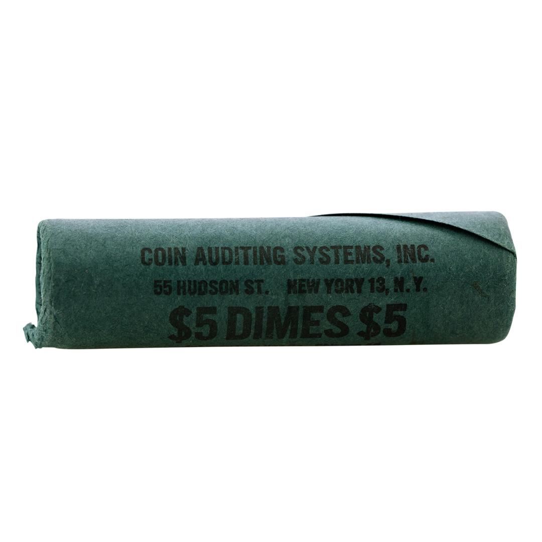 One Original Bank Roll of (50) Brilliant Uncirculated 1964-D Roosevelt Dime Coins.
