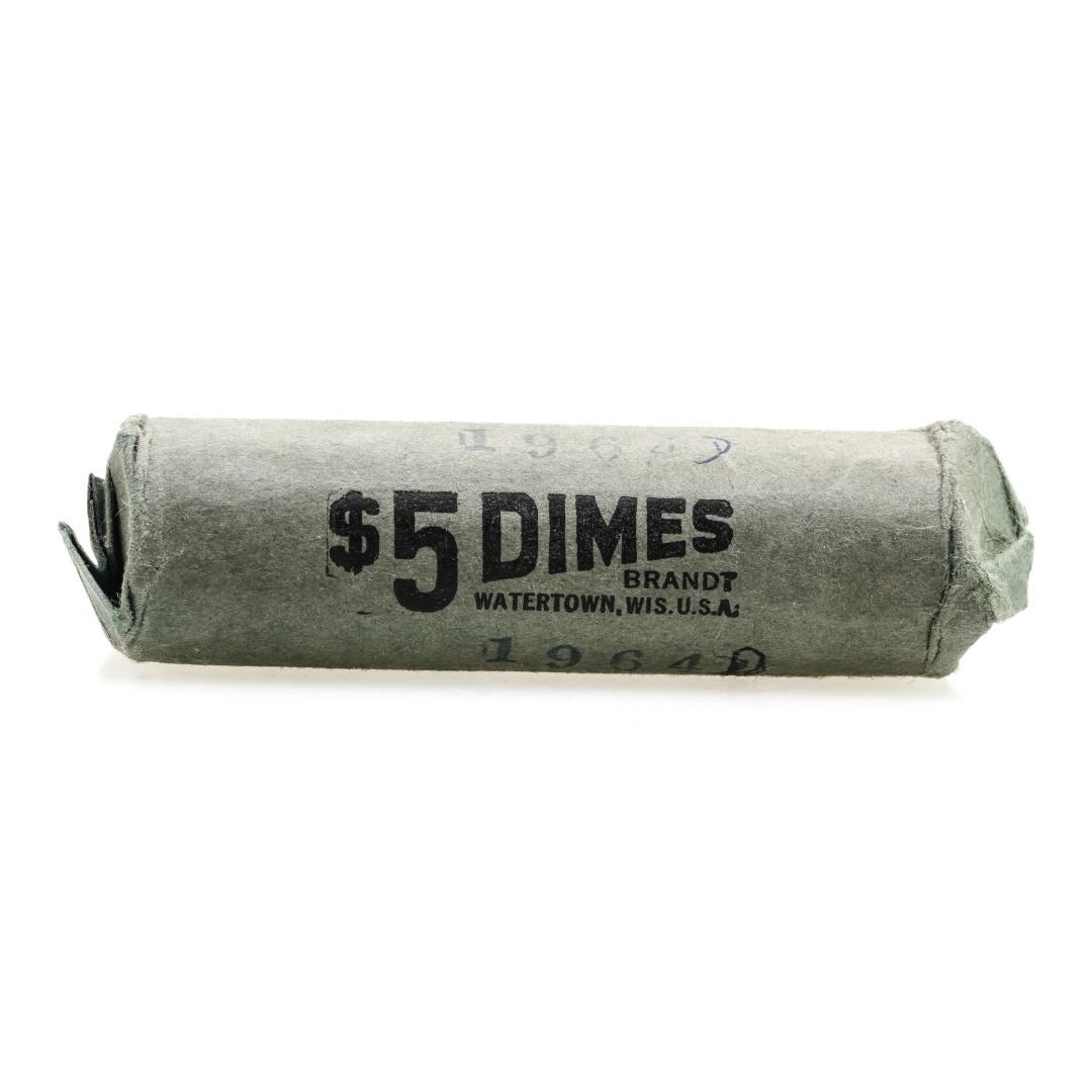 One Original Bank Roll of (50) Brilliant Uncirculated 1964-D Roosevelt Dime Coins .