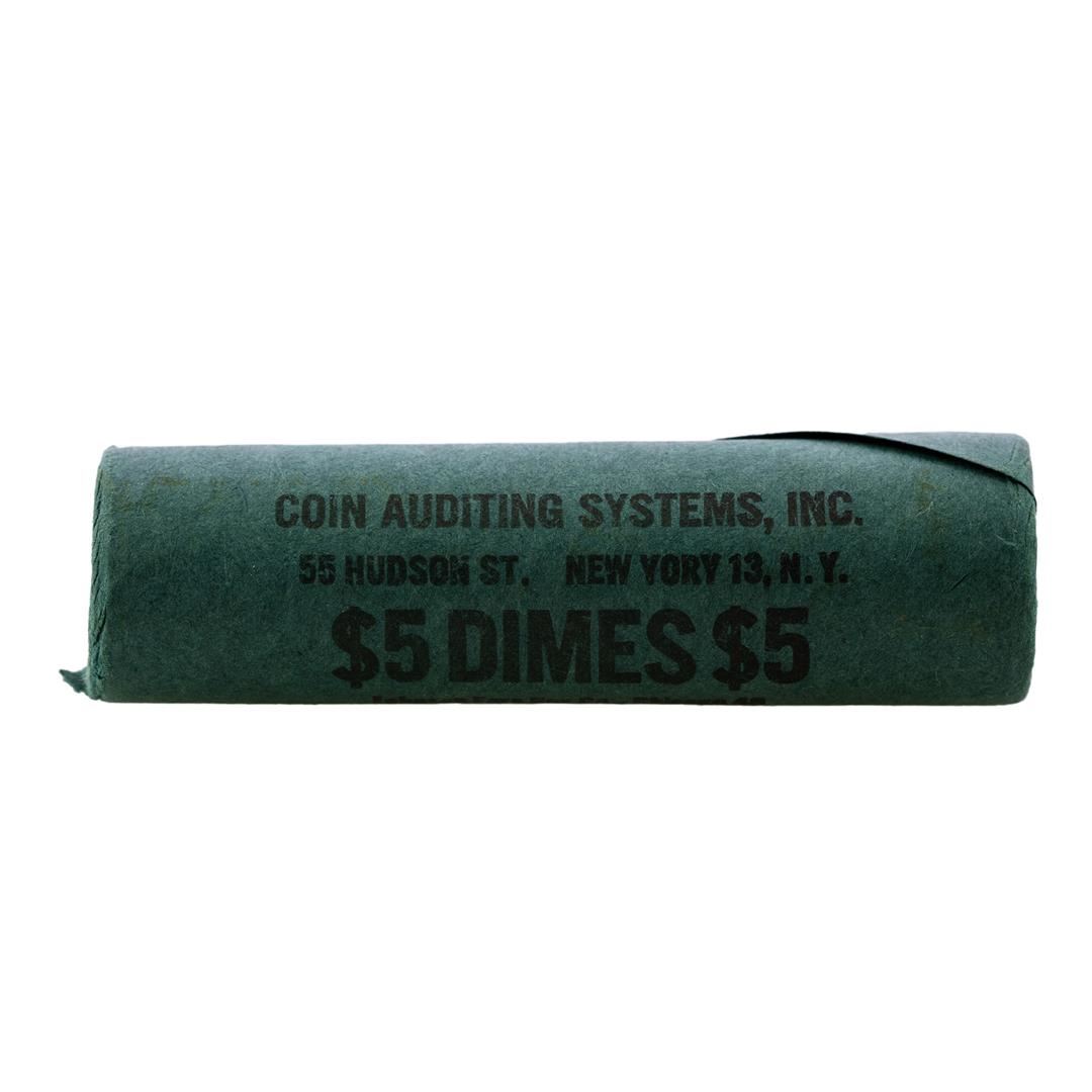 One Original Bank Roll of (50) Brilliant Uncirculated 1964 Roosevelt Dime Coins.