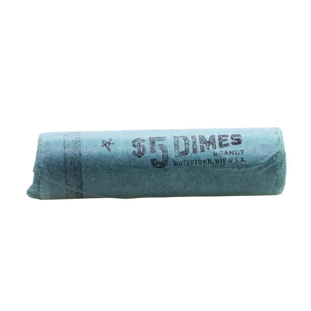 One Original Bank Roll of (50) Brilliant Uncirculated 1964 Roosevelt Dime Coins.