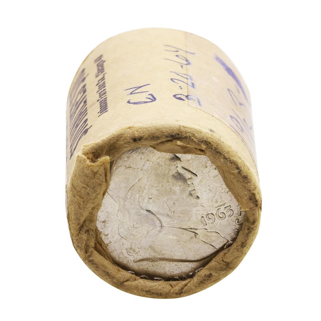 One Original Bank Wrapped Roll of (20) Brilliant Uncirculated 1963 Franklin Half Dollar Coins.