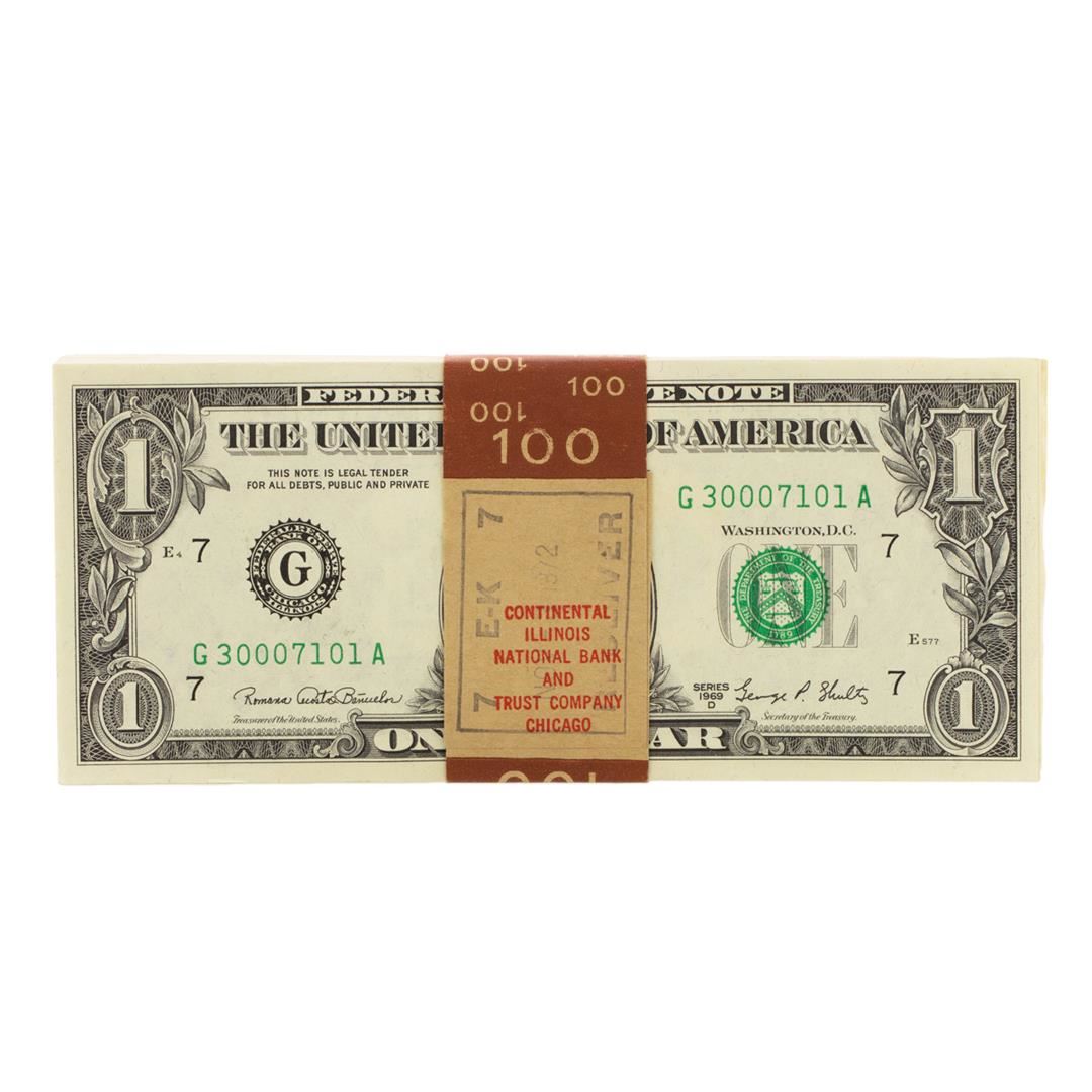 Original Pack of (100) Consecutive 1969D $1 Federal Reserve Notes Chicago