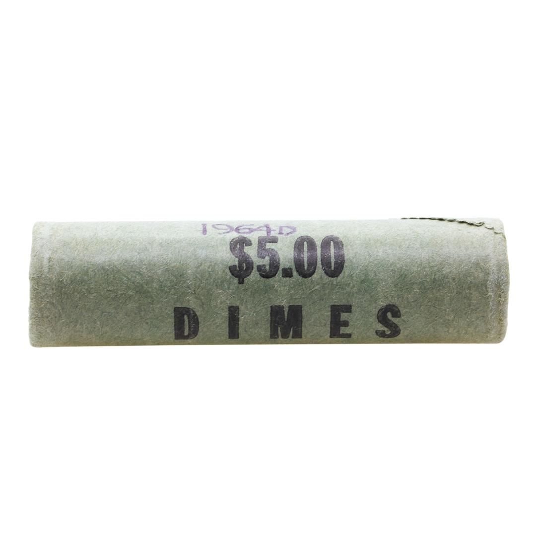 One Original Roll of (50) Brilliant Uncirculated 1964-D Roosevelt Dime Coins Amazing Toning.