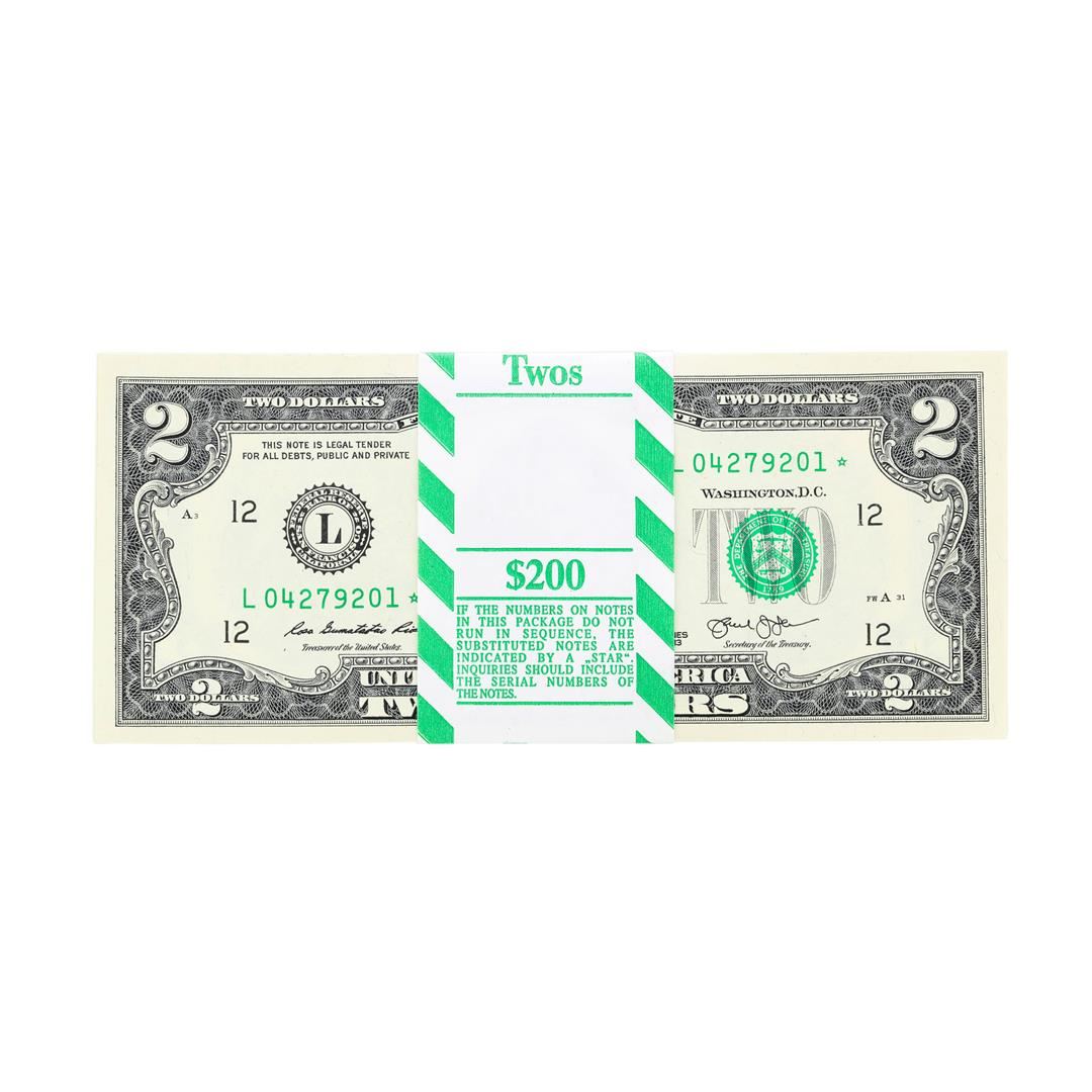 One Pack of (100) 2013 $2 Federal Reserve STAR Notes.