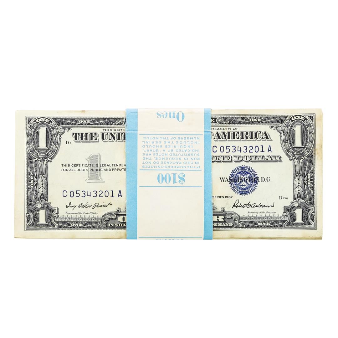 One Pack of (100) Consecutive 1957 $1 Silver Certificate Notes.