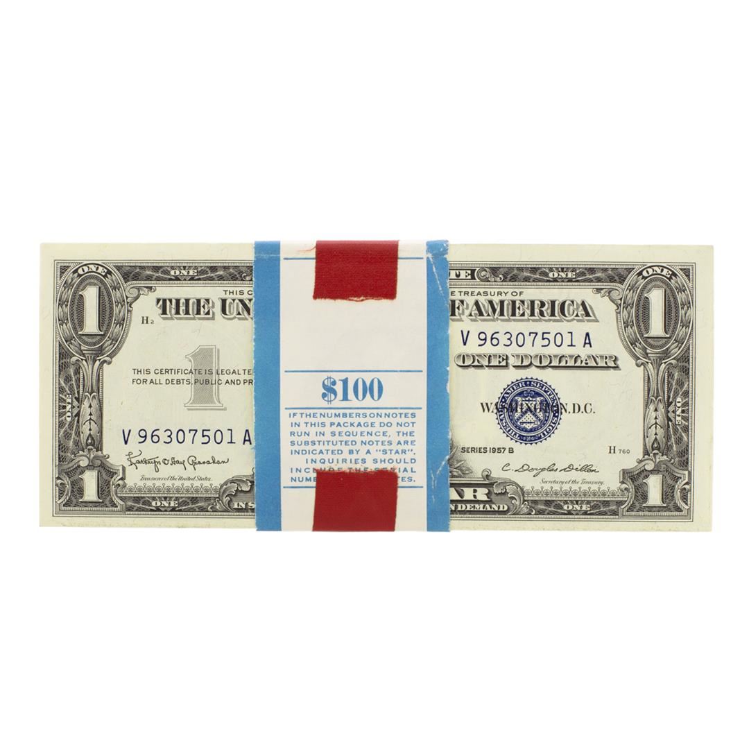 One Pack of (100) Consecutive 1957B $1 Silver Certificate Notes.