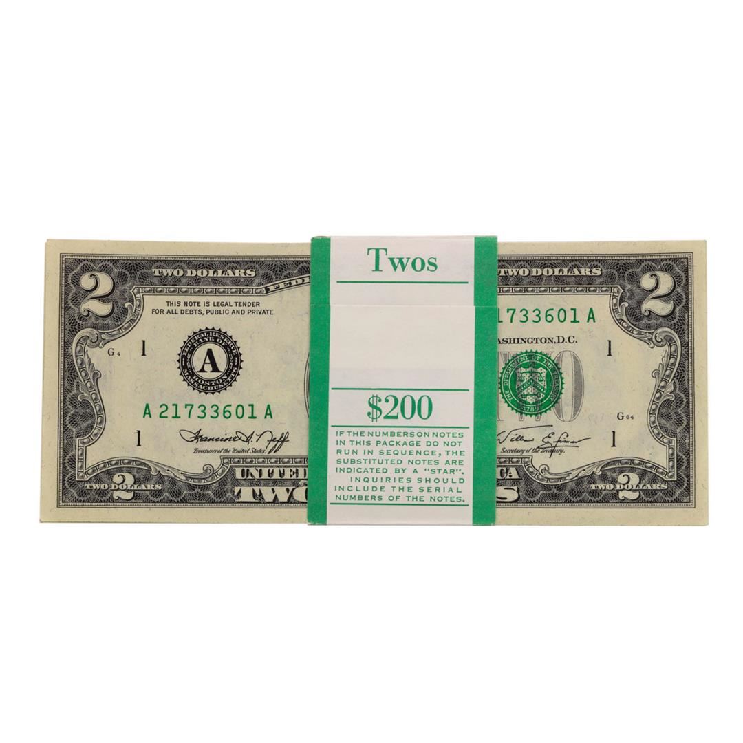 One Pack of (100) Consecutive 1976 $2 Federal Reserve Notes Boston.