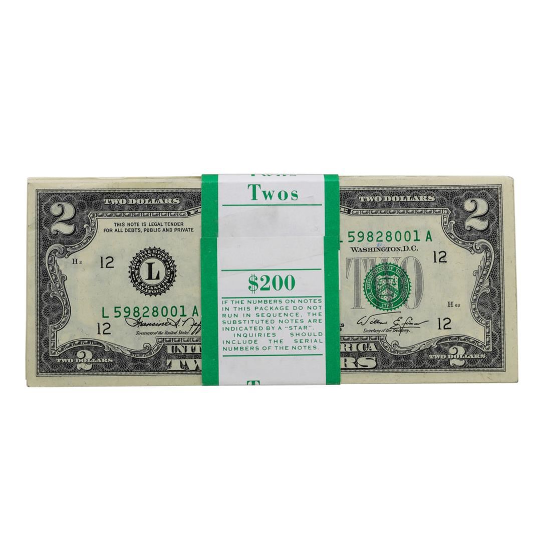 Pack of (100) Consecutive 1976 $2 Federal Reserve Notes San Francisco