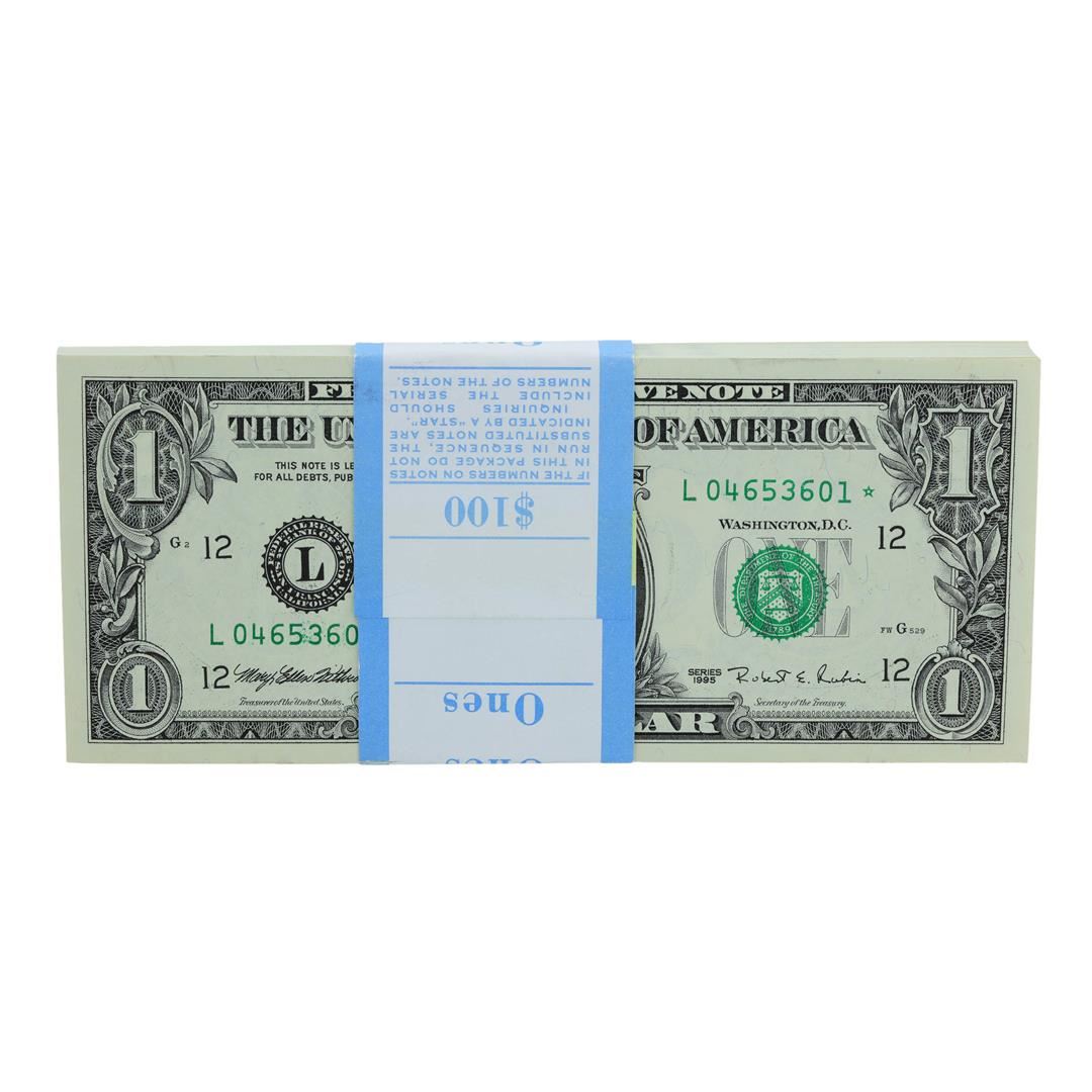 Pack of (100) Consecutive 1995 $1 Federal Reserve STAR Notes San Francisco