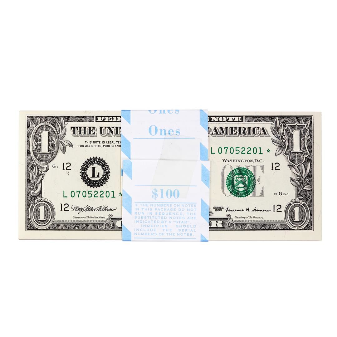 Pack of (100) Consecutive 1999 $1 Federal Reserve STAR Notes San Francisco