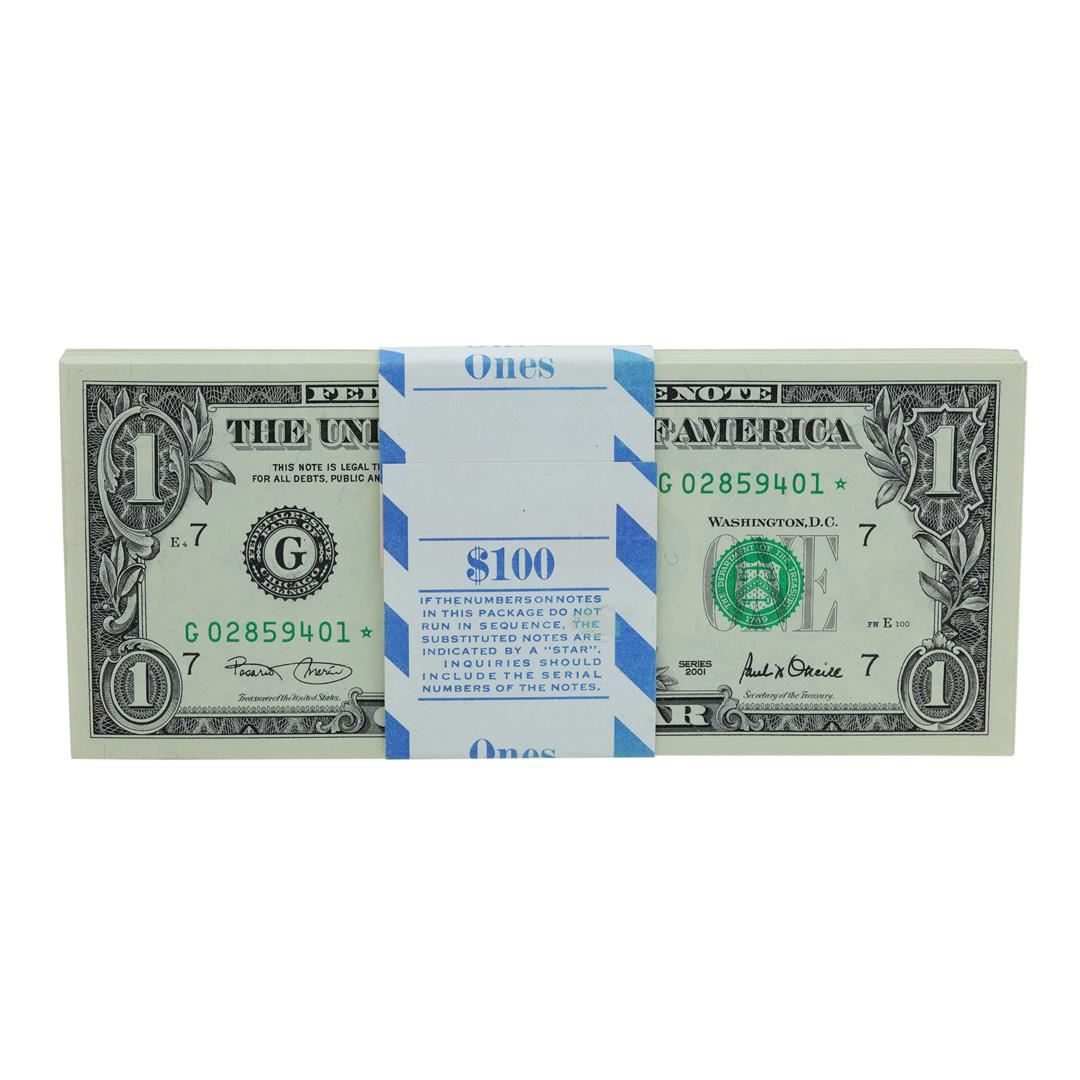 Pack of (100) Consecutive 2001 $1 Federal Reserve STAR Notes Chicago