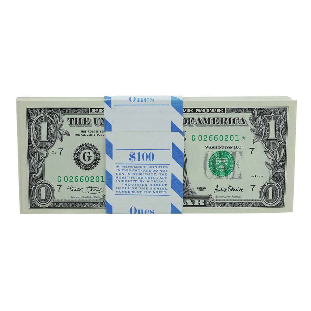Pack of (100) Consecutive 2001 $1 Federal Reserve STAR Notes Chicago