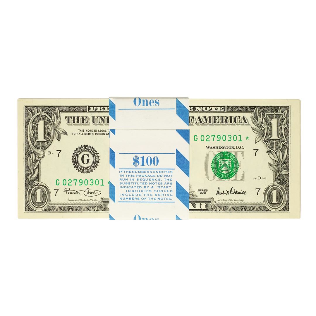 Pack of (100) Consecutive 2001 $1 Federal Reserve STAR Notes Chicago