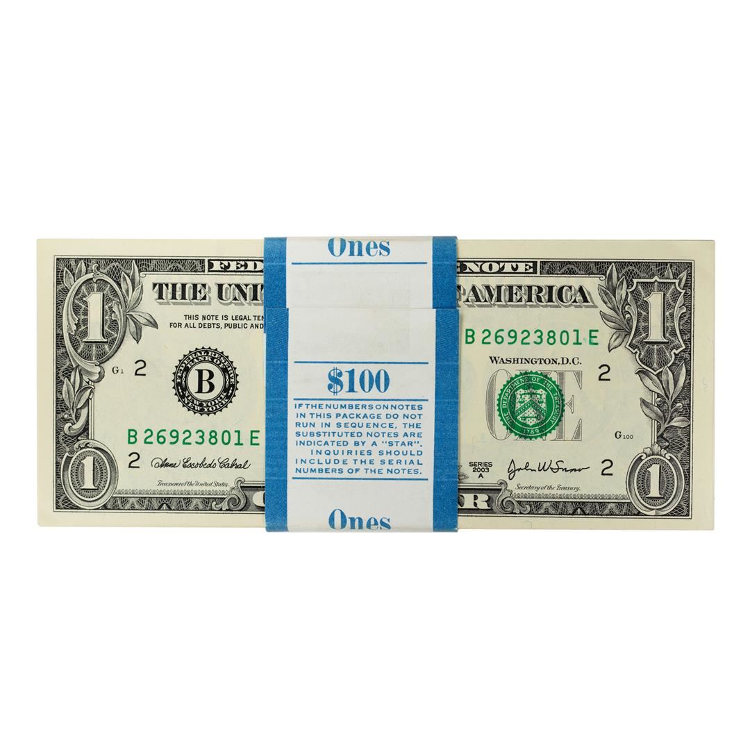 Pack of (100) Consecutive 2003A $1 Federal Reserve Notes New York