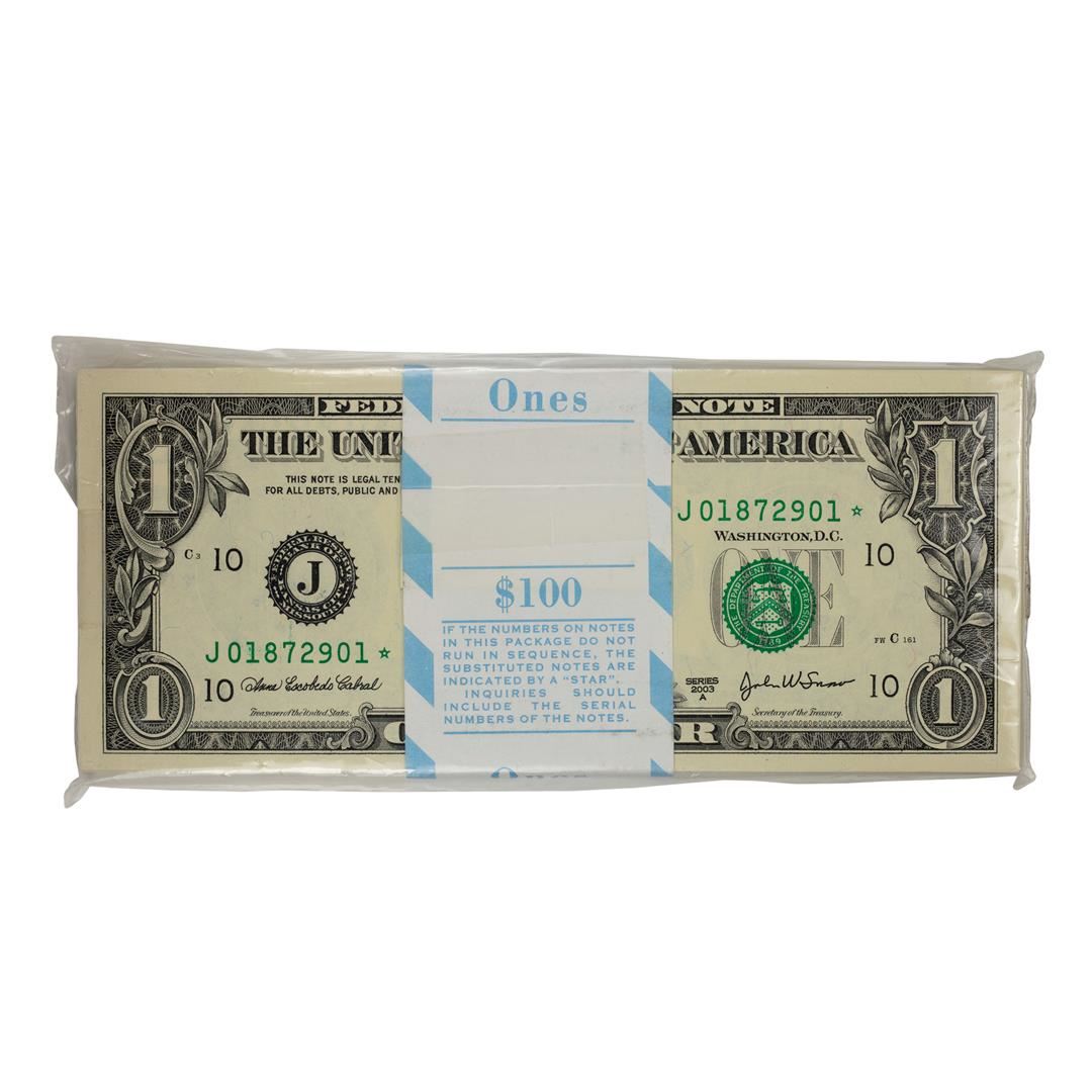 Pack of (100) Consecutive 2003A $1 Federal Reserve STAR Notes