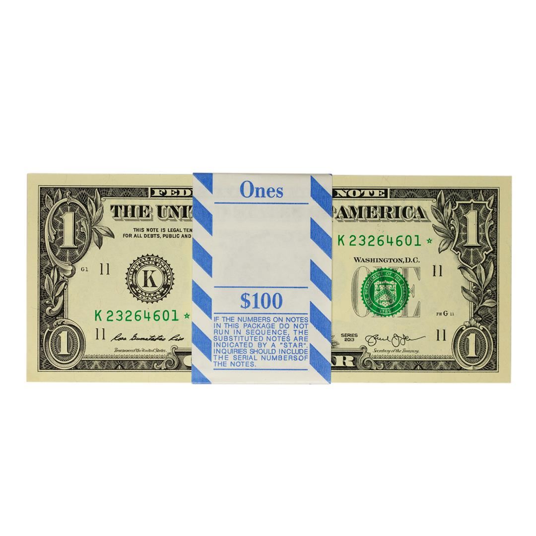 Pack of (100) Consecutive 2013 $1 Federal Reserve STAR Notes Dallas