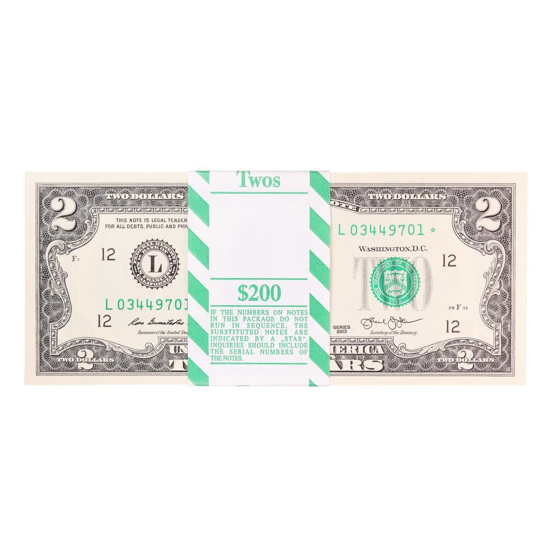 Pack of (100) Consecutive 2013 $2 Federal Reserve STAR Notes San Francisco