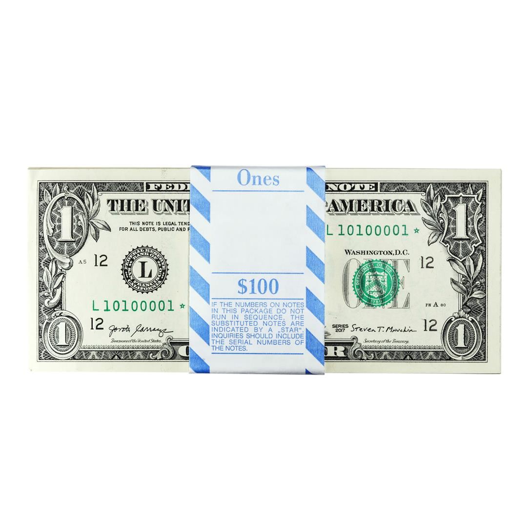 One Pack of (100) Consecutive 2017 $1 Federal Reserve STAR Notes Binary Serial Number.