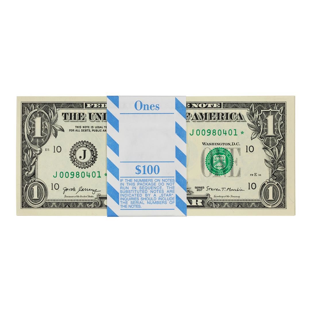 Pack of (100) Consecutive 2017 $1 Federal Reserve STAR Notes Kansas City