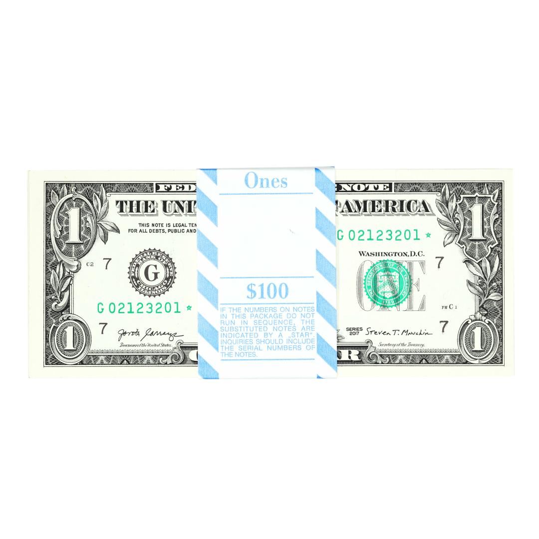 Pack of (100) Consecutive 2017 $1 Federal Reserve Star Notes Chicago