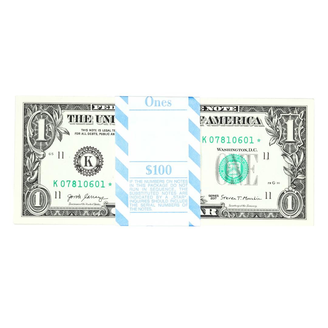 Pack of (100) Consecutive 2017 $1 Federal Reserve Star Notes Dallas