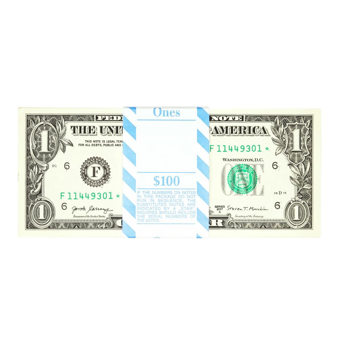 Pack of (100) Consecutive 2017A $1 Federal Reserve STAR Notes Atlanta