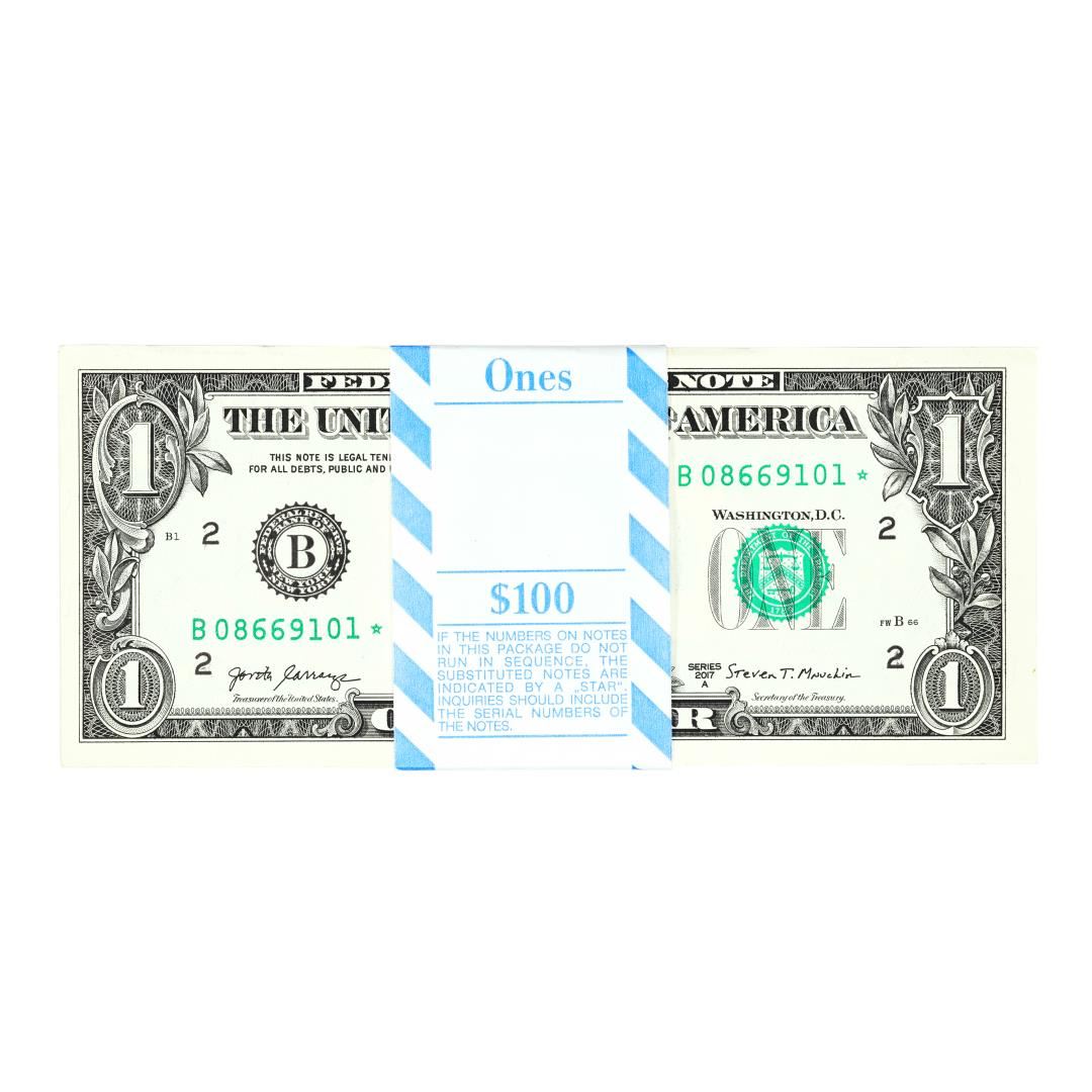 Pack of (100) Consecutive 2017A $1 Federal Reserve STAR Notes New York