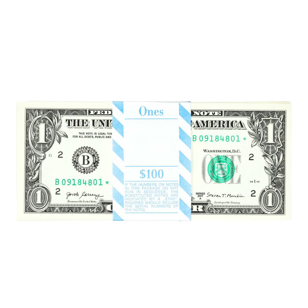 Pack of (100) Consecutive 2017A $1 Federal Reserve STAR Notes New York