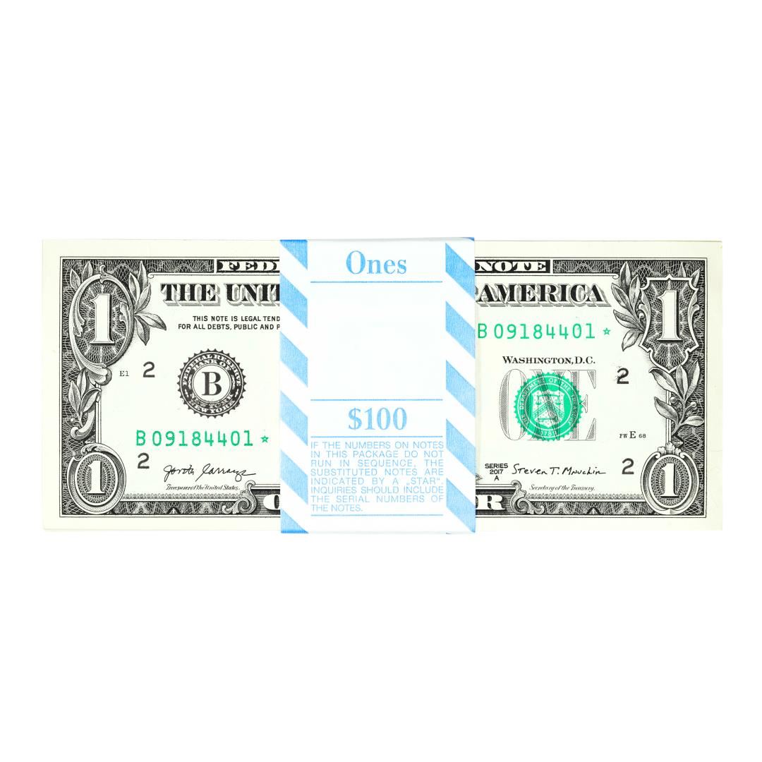 Pack of (100) Consecutive 2017A $1 Federal Reserve STAR Notes New York