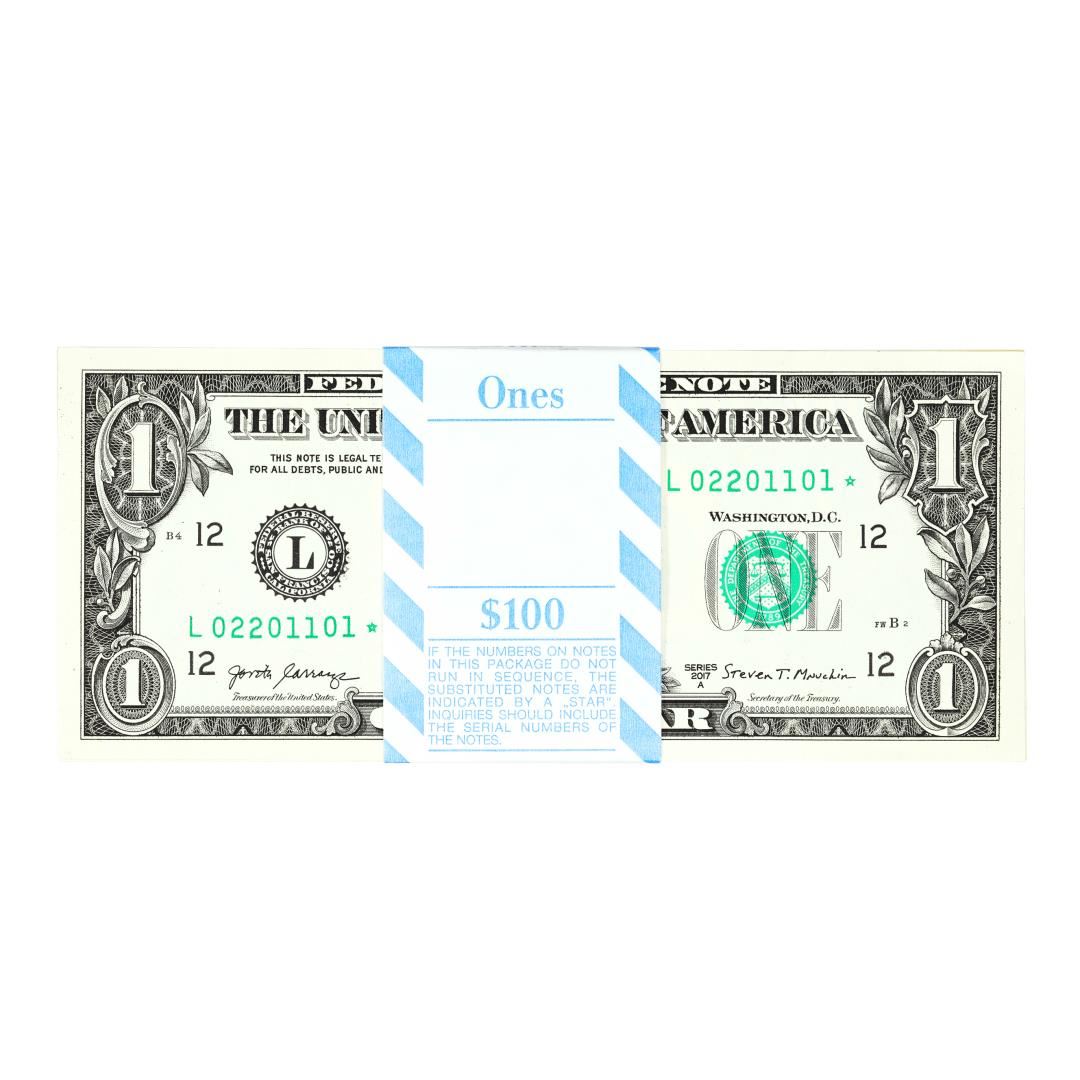 Pack of (100) Consecutive 2017A $1 Federal Reserve STAR Notes San Francisco