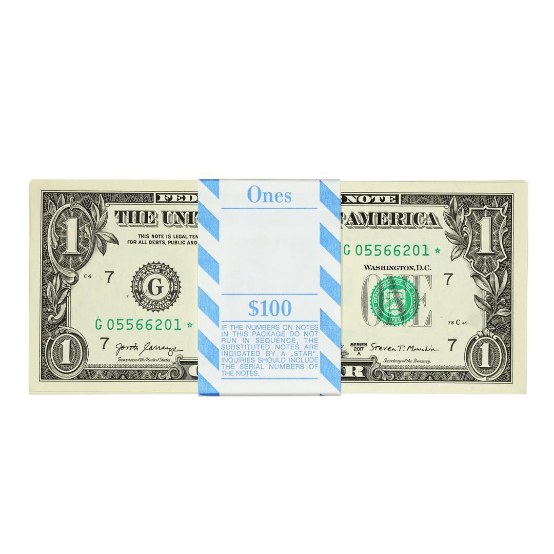 Pack of (100) Consecutive 2017A $1 Federal Reserve Star Notes Chicago