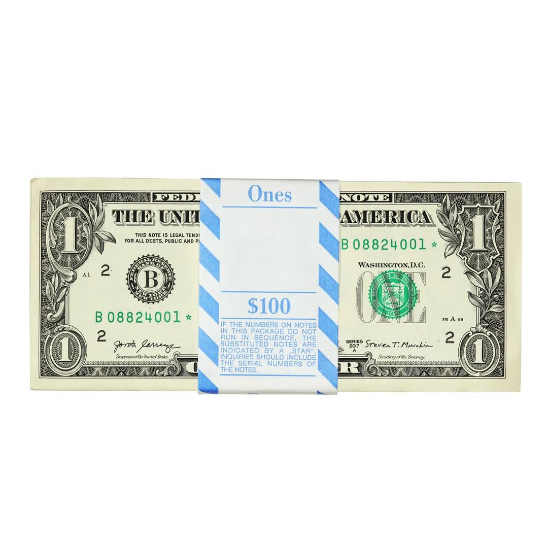 Pack of (100) Consecutive 2017A $1 Federal Reserve Star Notes New York