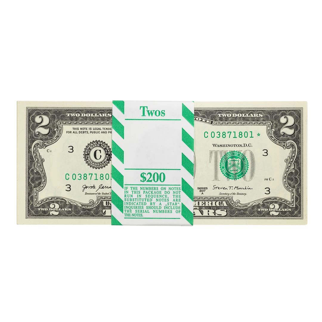 Pack of (100) Consecutive 2017A $2 Federal Reserve STAR Notes Philadelphia