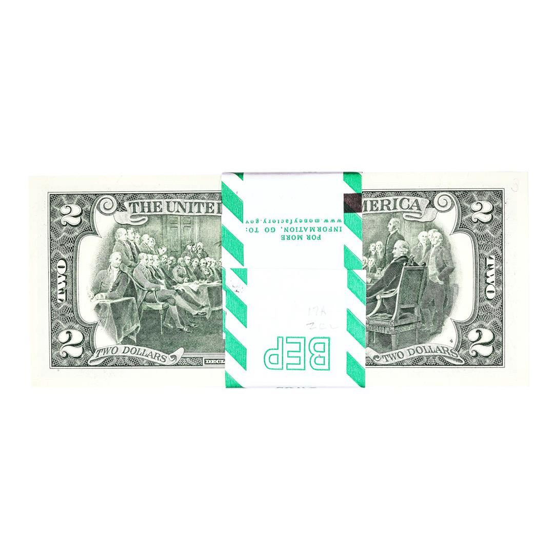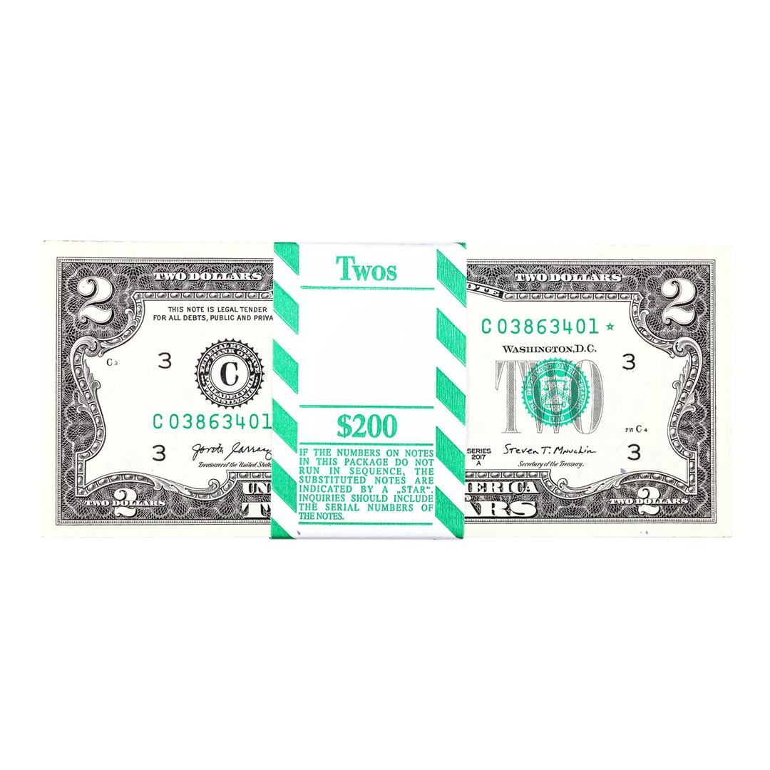 Pack of (100) Consecutive 2017A $2 Federal Reserve STAR Notes Philadelphia