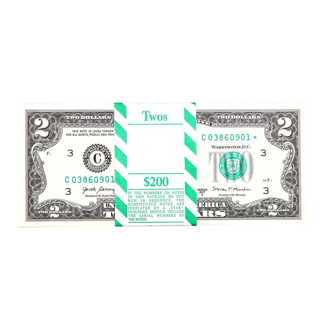 Pack of (100) Consecutive 2017A $2 Federal Reserve STAR Notes Philadelphia