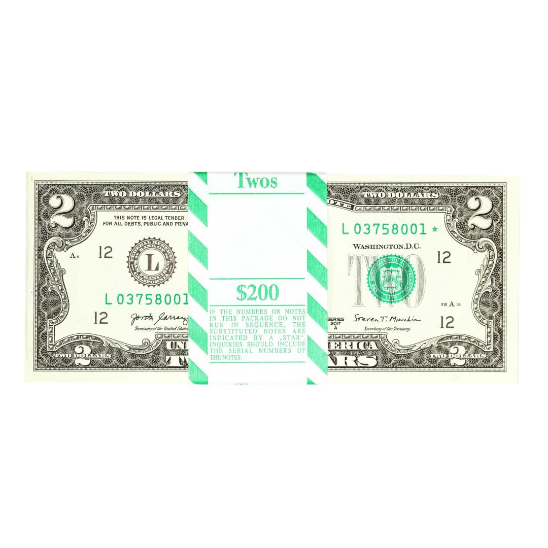Pack of (100) Consecutive 2017A $2 Federal Reserve STAR Notes San Francisco