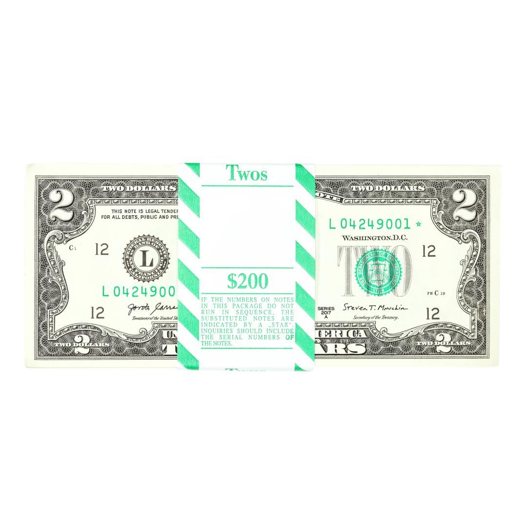 Pack of (100) Consecutive 2017A $2 Federal Reserve STAR Notes San Francisco