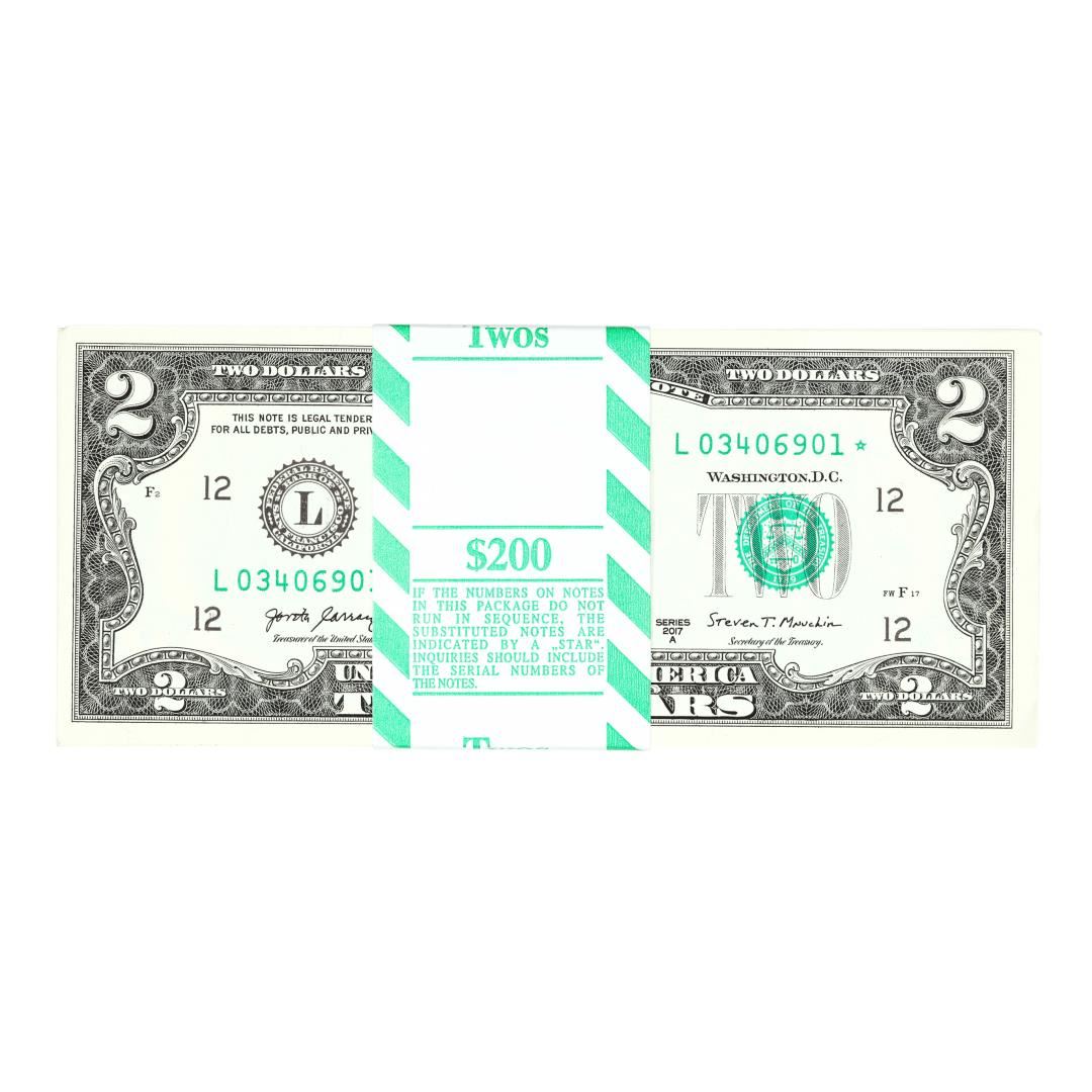 Pack of (100) Consecutive 2017A $2 Federal Reserve Star Notes San Francisco