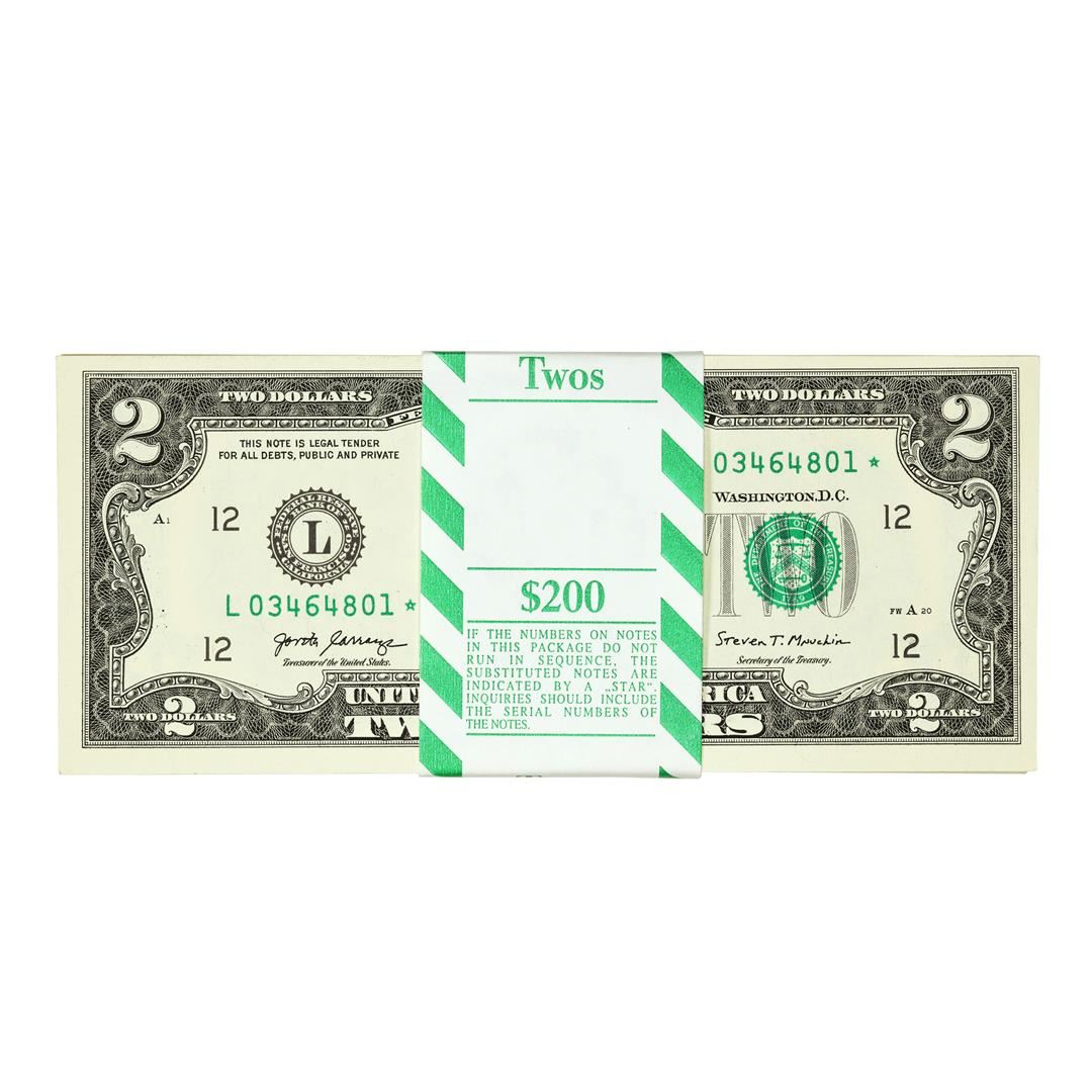 Pack of (100) Consecutive 2017A $2 Federal Reserve Star Notes San Francisco