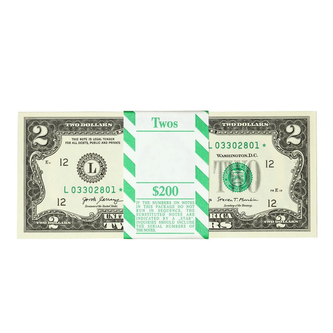 Pack of (100) Consecutive 2017A $2 Federal Reserve Star Notes San Francisco