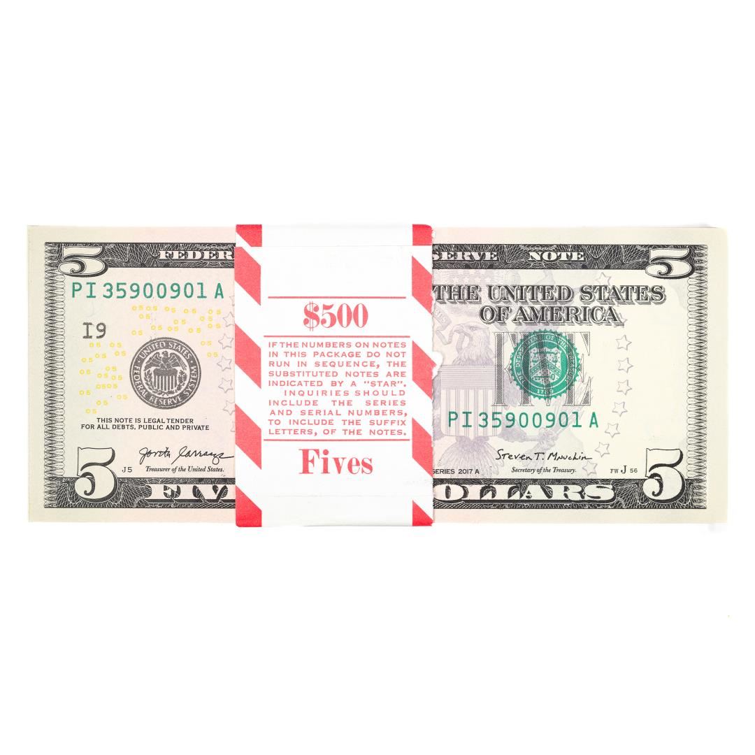 Pack of (100) Consecutive 2017A $5 Federal Reserve Notes Minneapolis