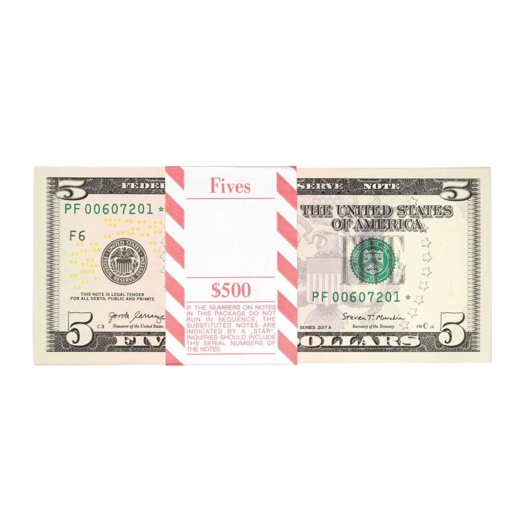 Pack of (100) Consecutive 2017A $5 Federal Reserve STAR Notes Atlanta