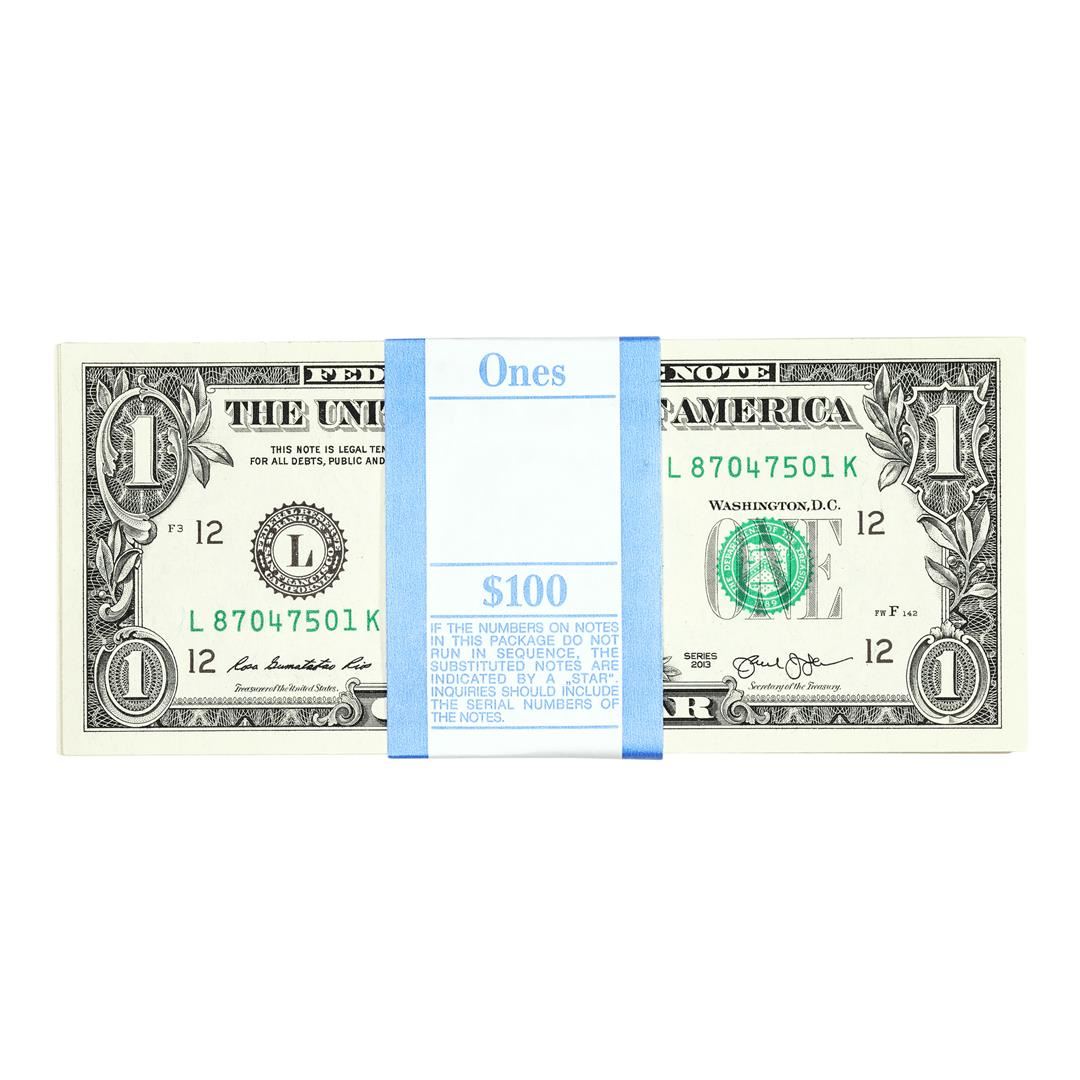 One Pack of (100) Uncirculated Consecutive 2013 $1 Federal Reserve Notes San Francisco.