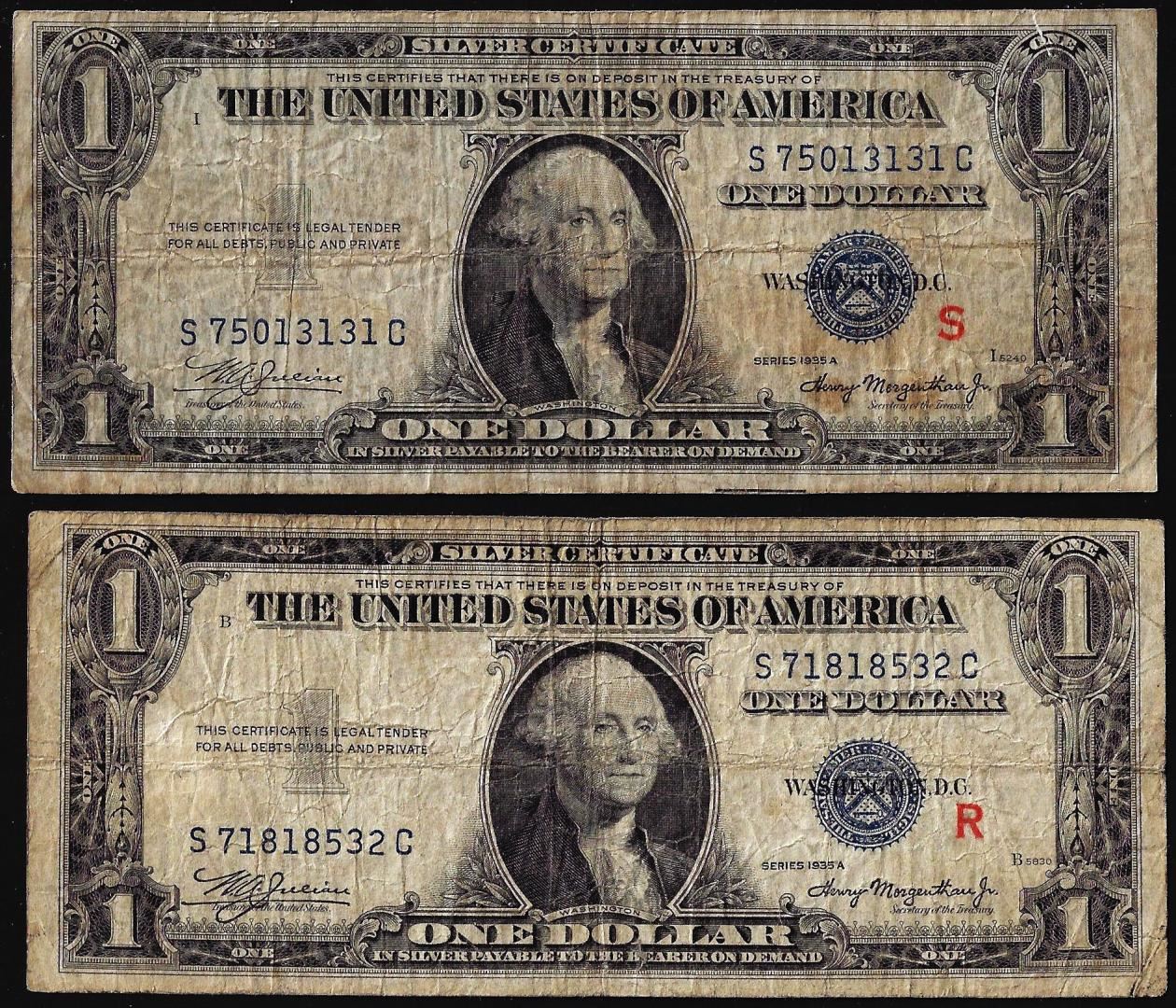 Pair of 1935A $1 Experimental "R" & "S" Silver Certificate Notes