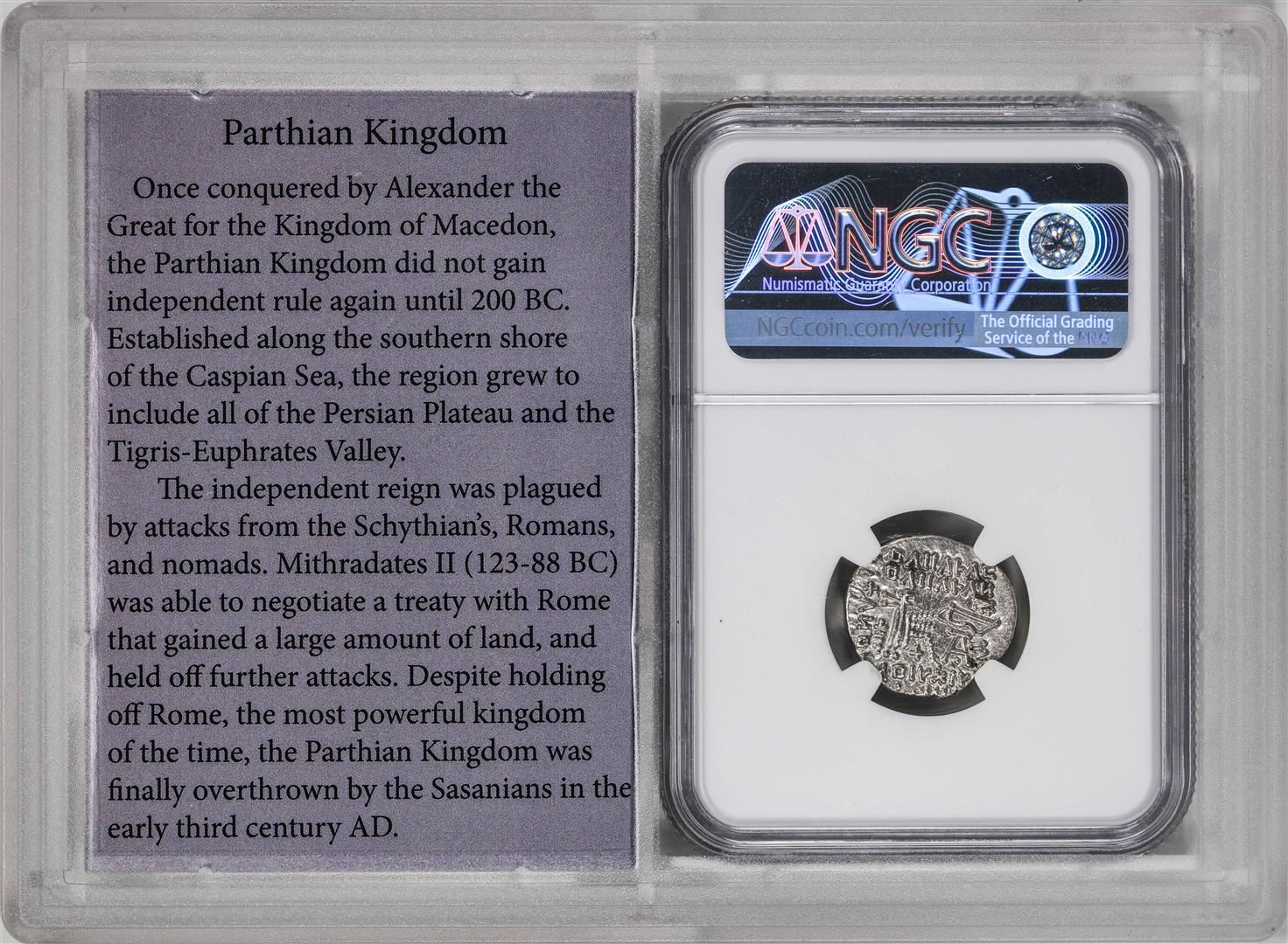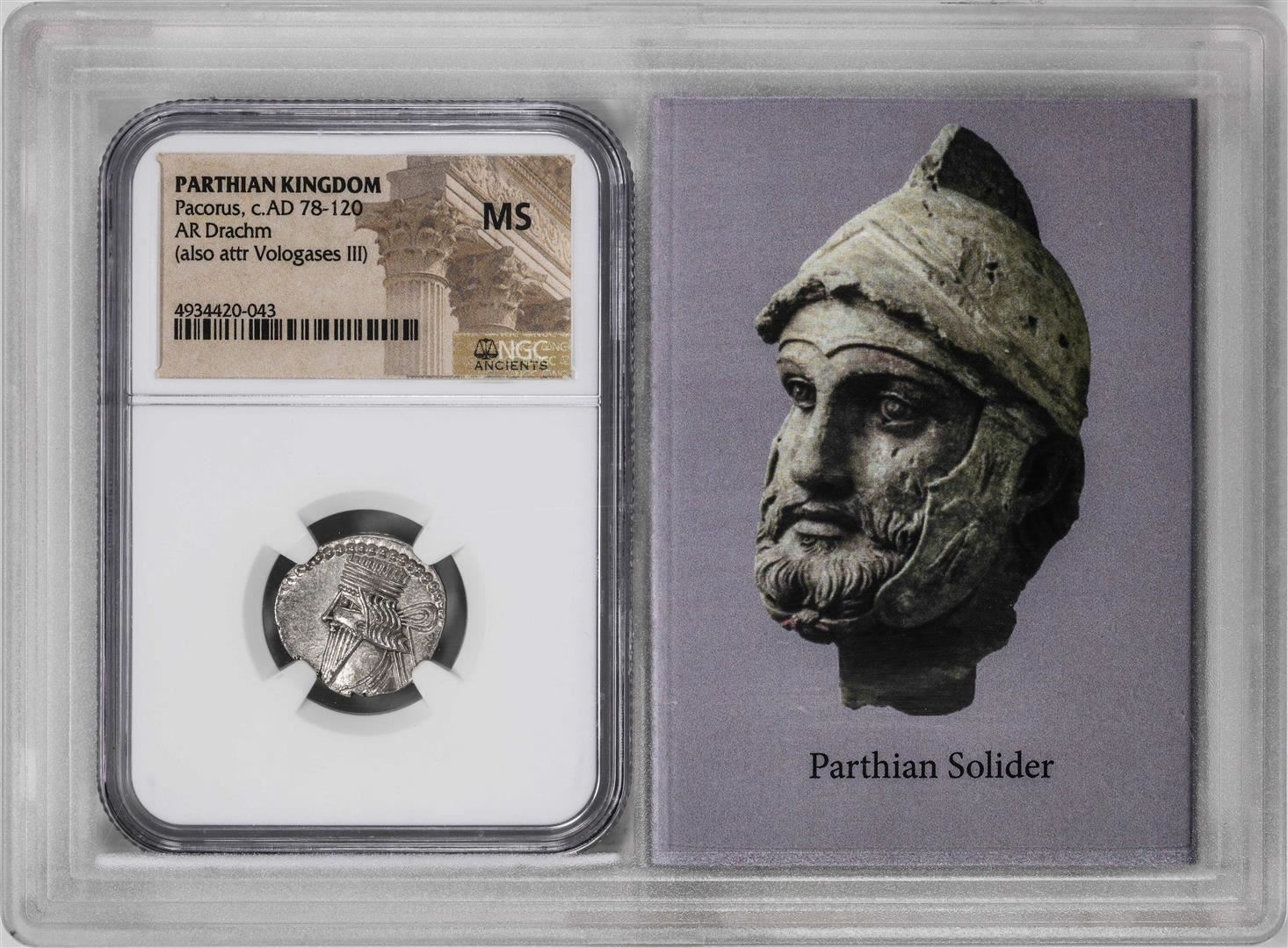 Parthian Kingdom Pacorus c.AD 78-120 AR Drachm Ancient Coin NGC MS Story Box